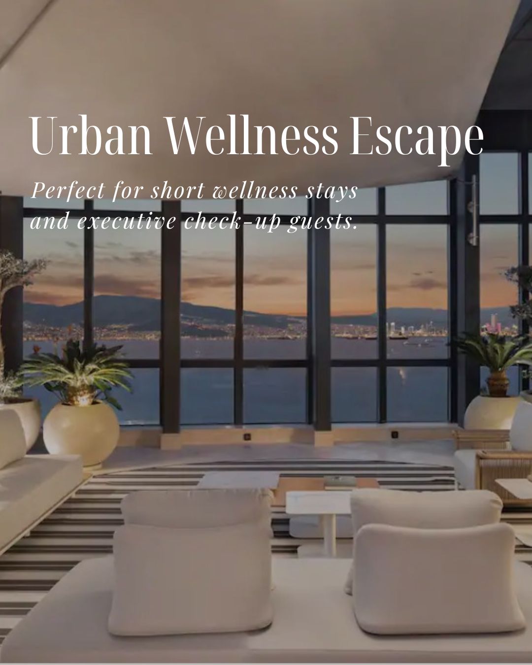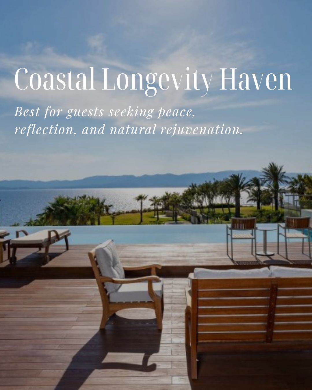 Panoramic sea views, Mediterranean cuisine, and direct proximity to longevity centers make it ideal for travelers seeking a seamless health-meets-lifestyle experience.